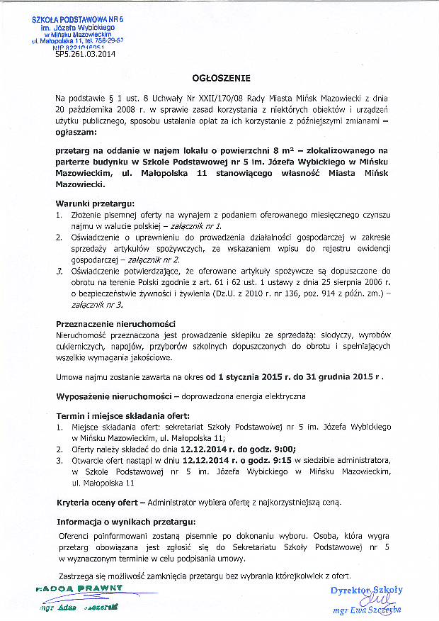 Danuta Solecka) - Dodanie załącznika [ogloszenie__wynajem_powierzchni_szkolnej_2015.pdf] do dokumentu. (Dokument opublikowany)